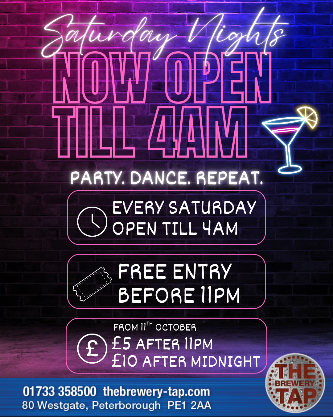 SATURDAY NIGHTS – BAR NOW OPEN TILL 4AM