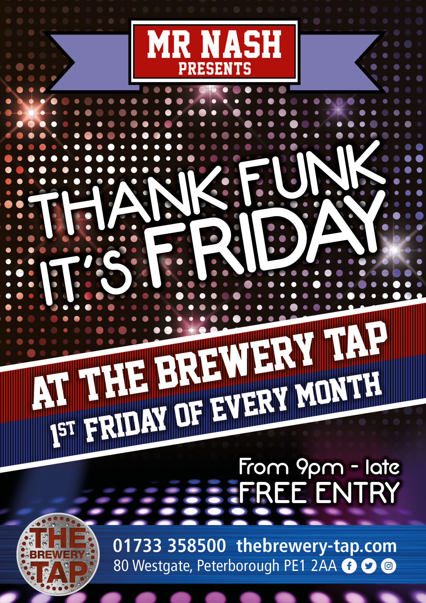 from 9pm- 2am Our resident DJ MrNash presents – THANK FUNK IT’S FRIDAY. EVERY FRIDAY IN NOVEMBER IN DECEMBER (except…