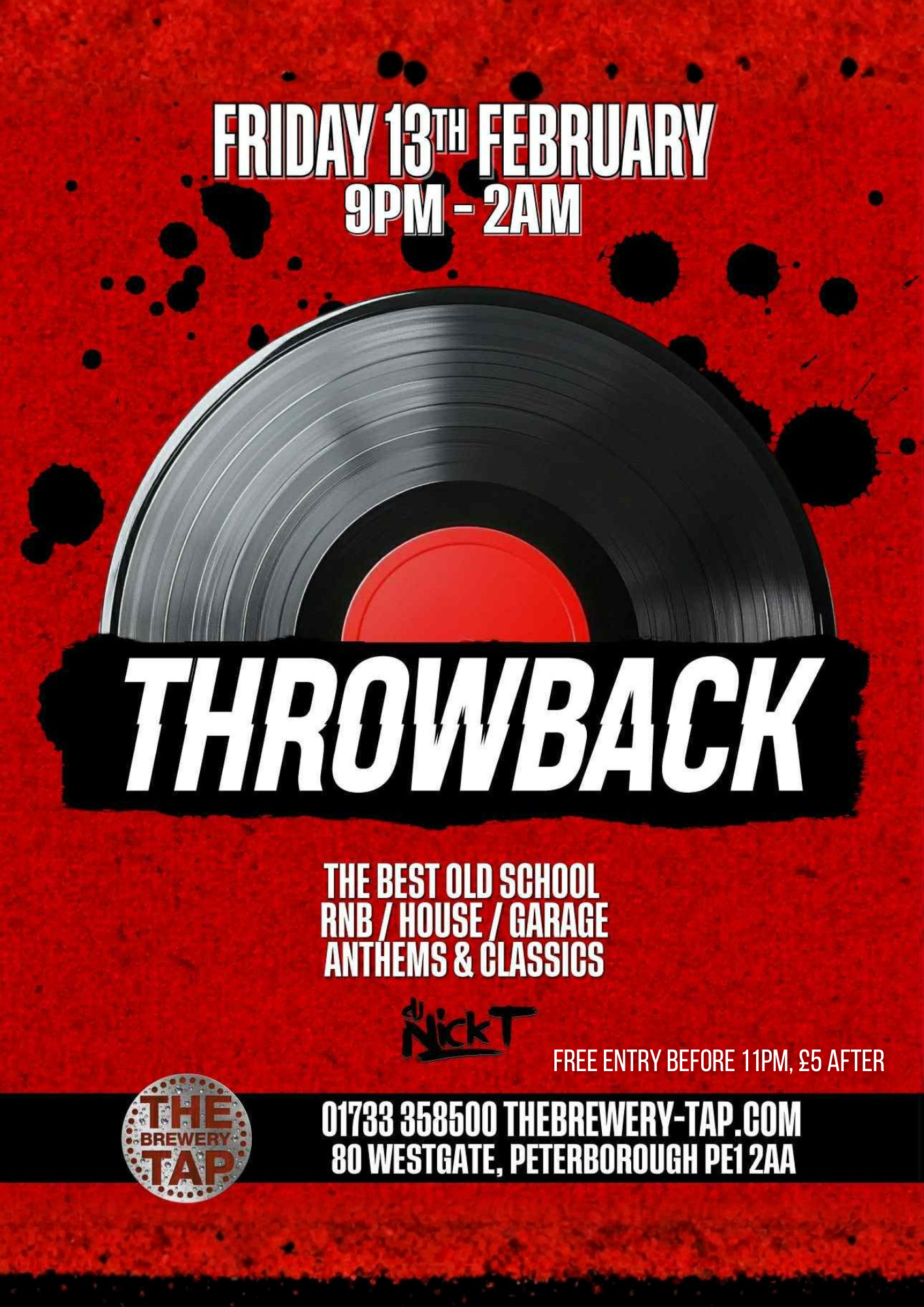 7. FRI 13TH FEB FROM 9PM: “DJ NICK T PRESENTS THROWBACK”