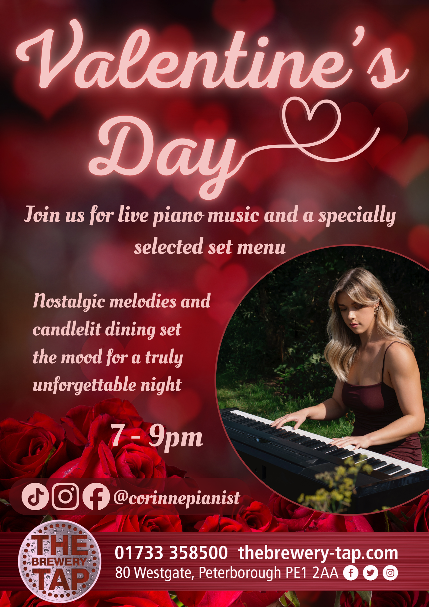 9. SAT 14TH FEB FROM 7PM: “VALENTINE’S DAY WITH PIANIST CORINNE”