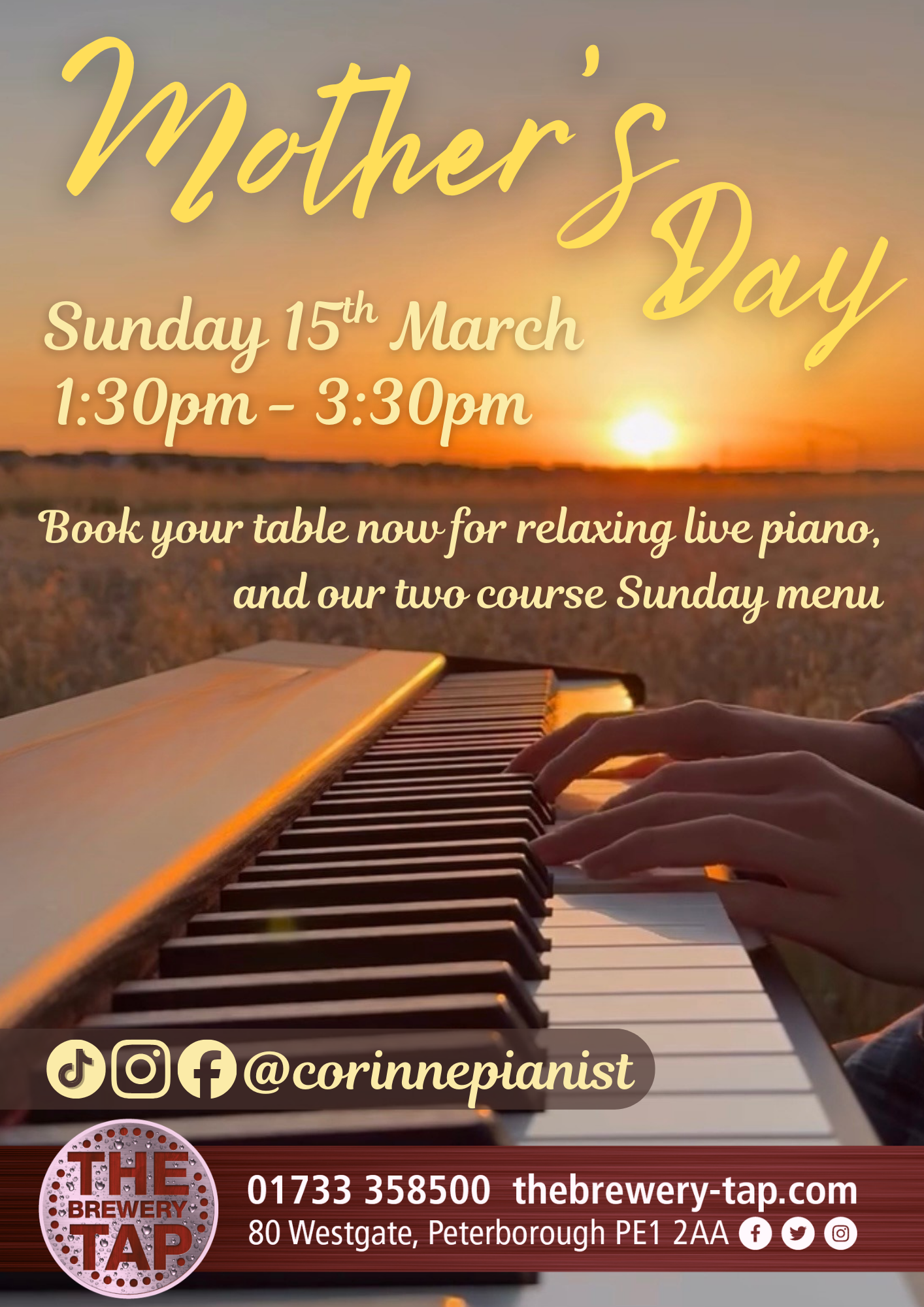 8. Sun 15th Mar FROM 1:30pm: “Mother’s Day Afternoon With Pianist Corinne”