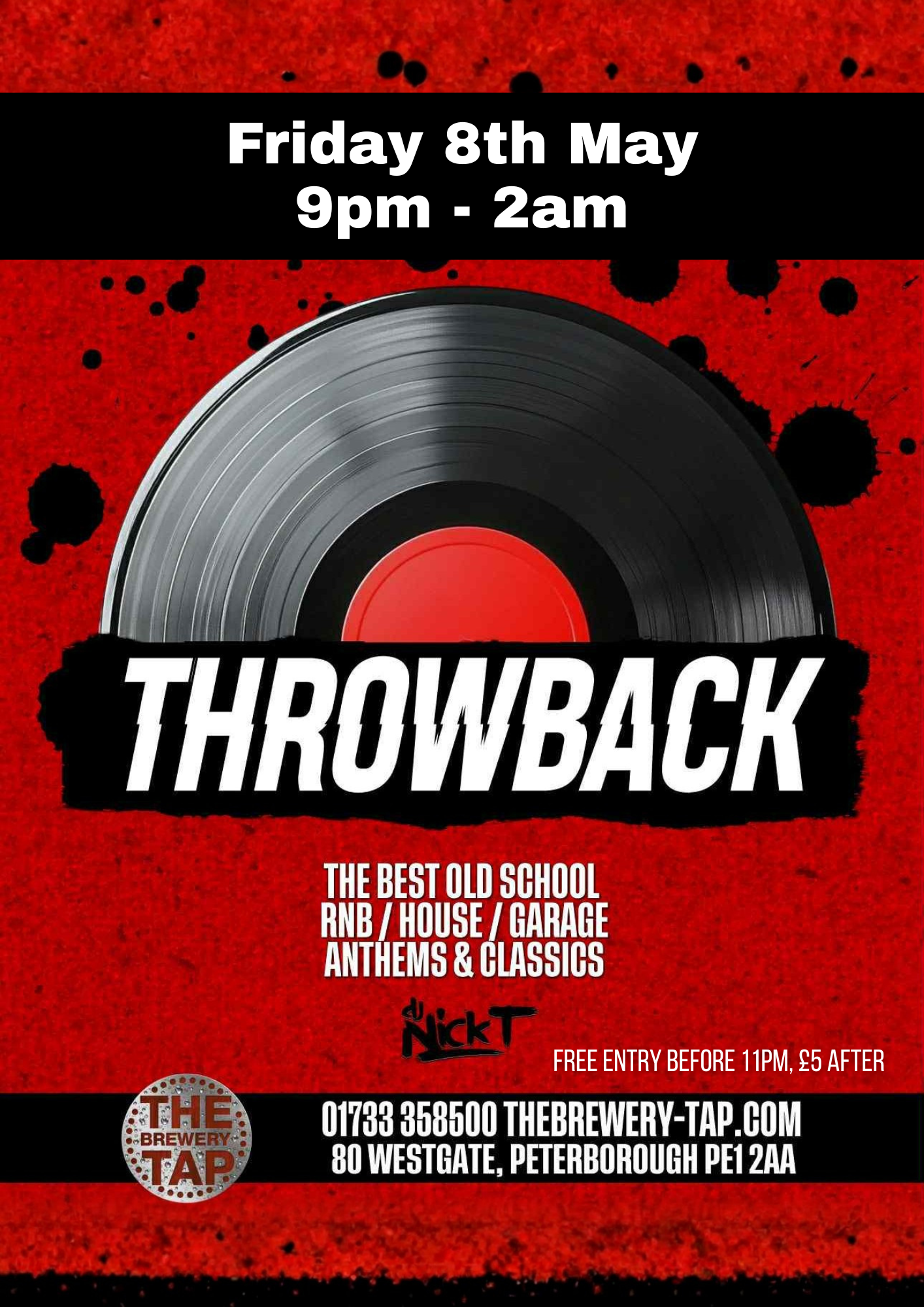 DJ NICK T presents Throwback – The Best Old School, RnB, House, Garage, Anthems and Classics. From 9pm till 2am….